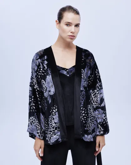 BJM-1622 3-delige fluwelen pyjamaset zwart/lila