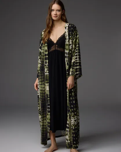 BM-1840 groen/zwarte kanten badjas en nachtjapon met bandjes