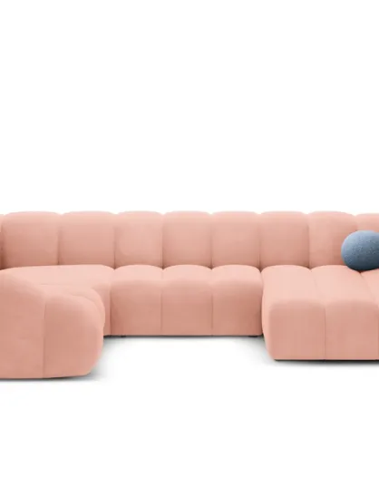 Panoramische hoekbank (linkerzijde) fluweel Lyna roze - 355x225x72 cm
