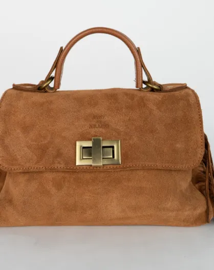 Neva camel fluwelen leren handtas - 28x22x10 cm
