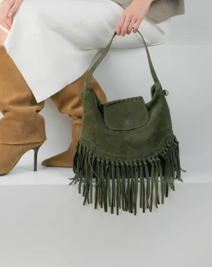 Vega fluwelen leren schoudertas flesgroen - 26x33x11 cm