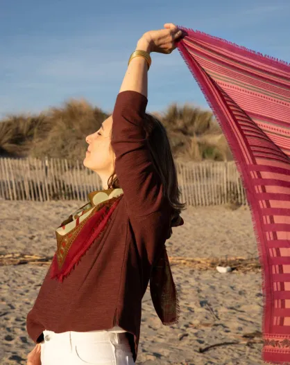 Raspberry Lines sjaal van 100% wol - 100x100 cm