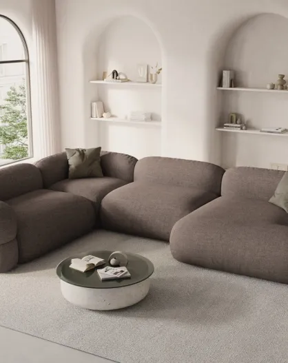Lony 5-zits Cappuccino modulaire panoramische hoekbank met linkerhoek - 345x250x68 cm