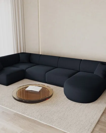 Jane 6-zits, marineblauwe, open rechter, panoramische hoekbank - 336x166x74 cm