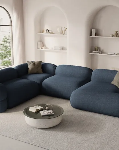Lony 5-zits modulaire panoramische hoekbank rechts donkerblauw - 345x250x68 cm
