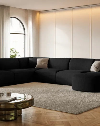 Talia 7-zits zwarte modulaire panoramische hoekbank rechts - 330x255x70 cm