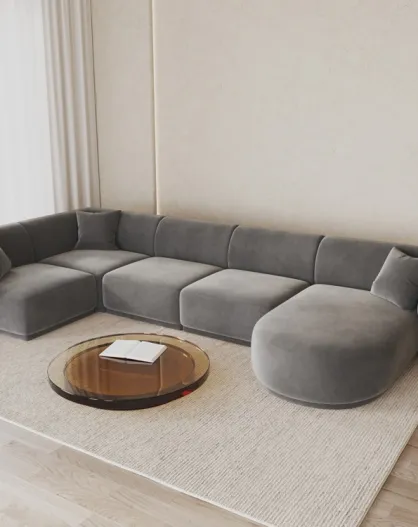 Panoramische hoekbank (rechterzijde) geel fluweel 6-zits grijs - 336x166x74 cm