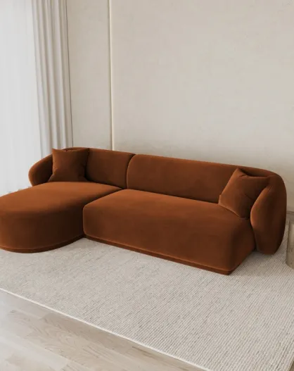 Rechterhoekbank geel fluweel 4-zits terracotta - 260x155x74 cm