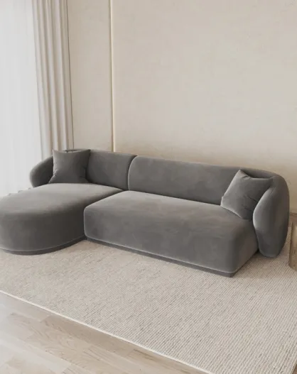 Rechterhoekbank geel fluweel 4-zits grijs - 260x155x74 cm