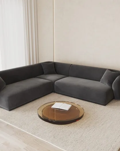 Geelfluwelen symmetrische hoekbank 5-zits donkergrijs - 256x256x74 cm