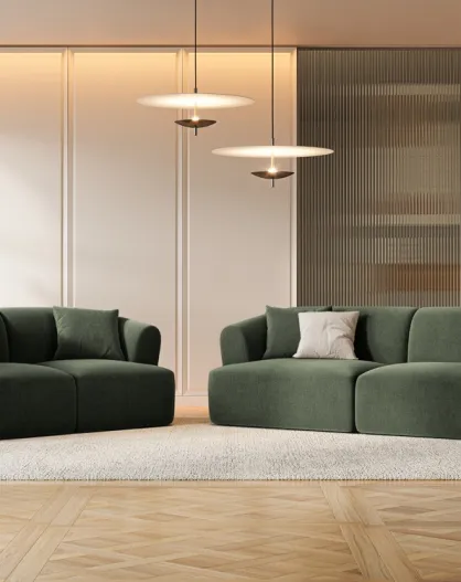 Modulaire 3-zitsbank van groen fluweel, 3-zitsbank, 220x90x70 cm