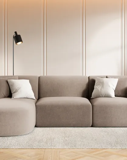 Talia 4-zitsbank in donkerbeige modulair fluweel met linkerhoek - 256x156x70 cm