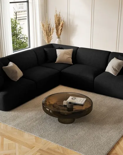 Talia 6-zits modulaire symmetrische hoekbank zwart - 255x255x70 cm