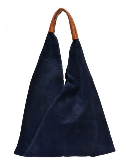 Valentina blauwe fluwelen leren hobotas - 31,5x37x4 cm