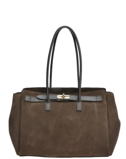 Sofia Fluwelen leren schoudertas donkerbruin - 25x31x10 cm
