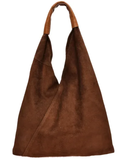 Valentina bruine fluwelen leren hobotas - 31,5x37x4 cm