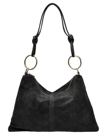 Noémie zwarte fluwelen leren schoudertas - 25,5x36 cm