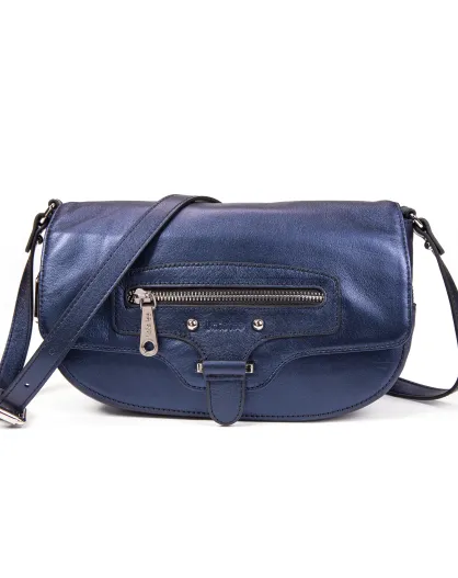 Franse blauwe Enara Z leren schoudertas - 23x12x10,5 cm