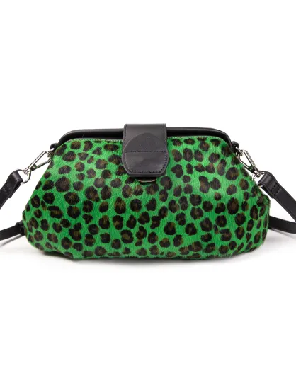 Marta FUR LEO groene leren schoudertas - 24x13,5x8 cm