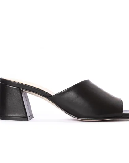 Pantoffels van Calais, gekleed in zwart leer - Hak: 5 cm