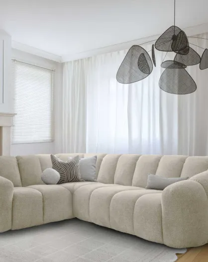 Vaste hoekbank L, links, beige, 265x205x75 cm