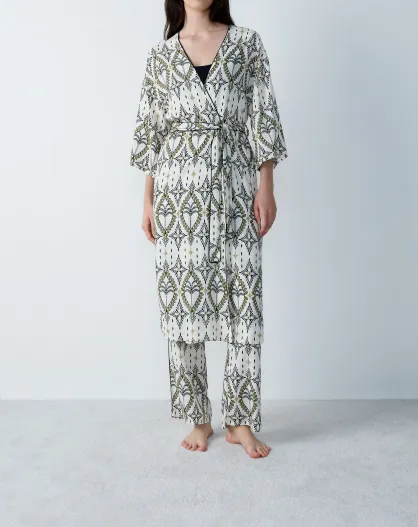 Negligé met nytro-print in wit