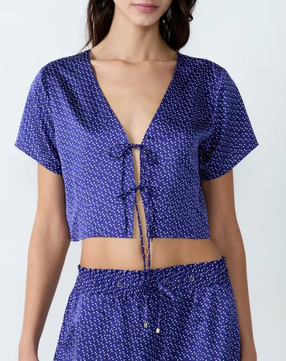 Tioko top met marineblauwe print