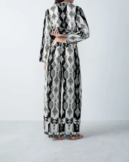 Nalani broek met ecru en zwarte print