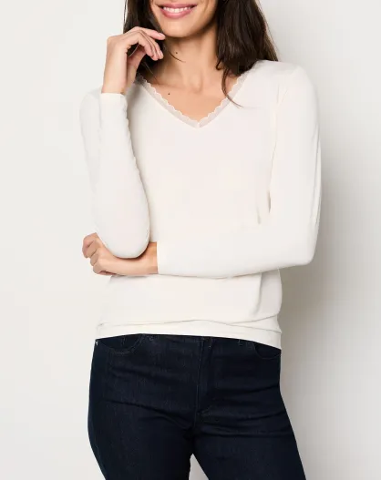 Warm Me Up T-shirt met kant ecru