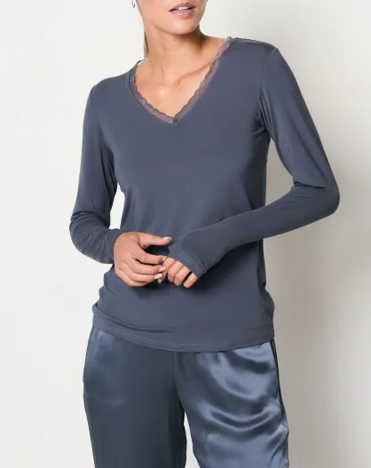 Warm Me Up marineblauw T-shirt met kant