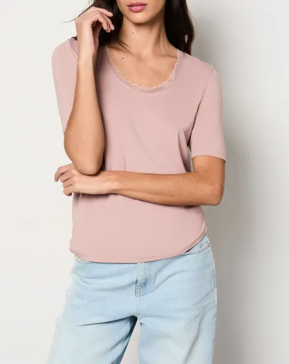Paars T-shirt met kant en warm me up