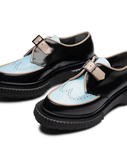 Derby's van kalfsleer met gesp in zwart/blauw/beige
