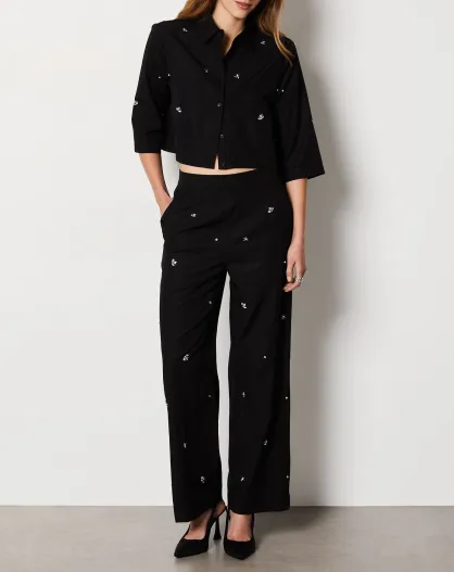 Kristallen broek met zwart borduursel