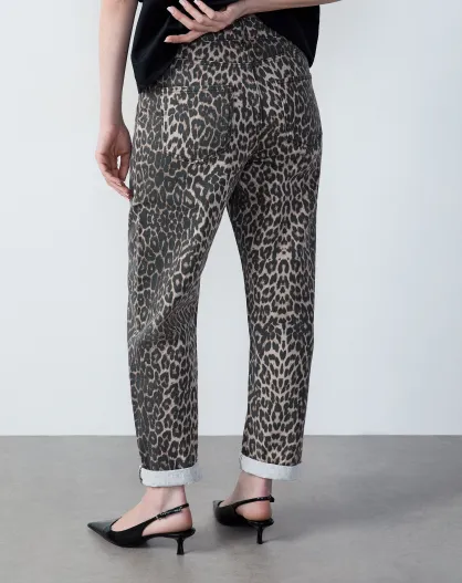 Donatien broek met luipaardprint en beige achtergrond