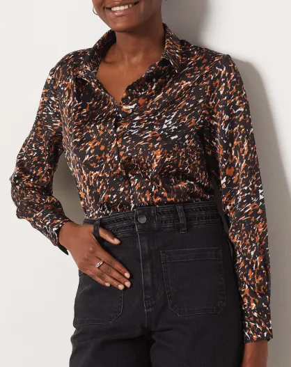 Nella shirt met bruine achtergrondprint