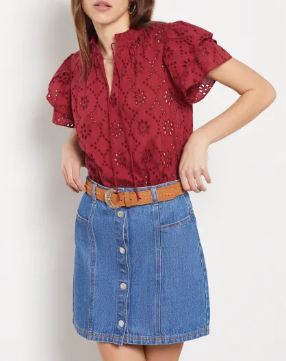 Aimée bordeauxrode top met borduursel