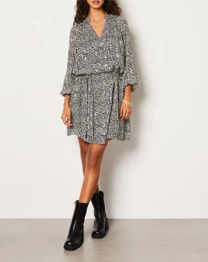 Lexie-jurk gedrukt op een zwarte achtergrond