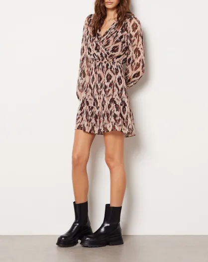 Een lila blauwgroene jurk met print