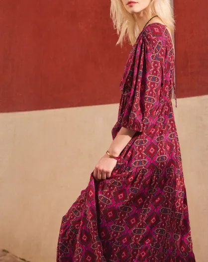 Bonnie-jurk met paarse achtergrondprint