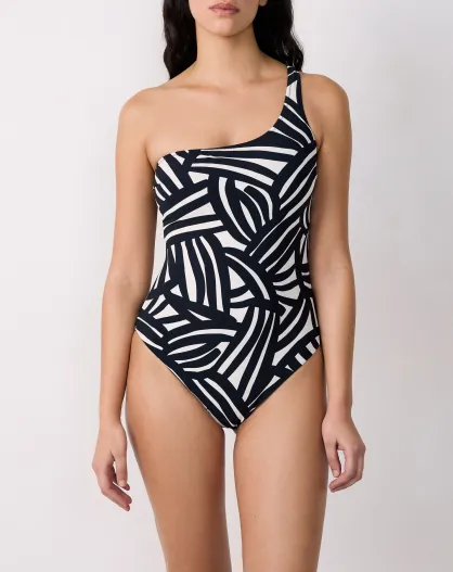 Espelho badpak uit één stuk zonder schelp, zwarte opdruk op witte achtergrond