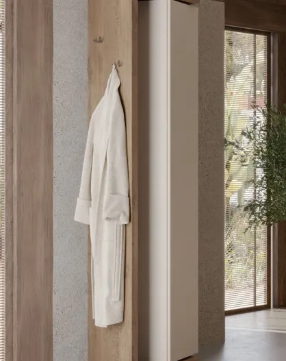Ancona - Badkameropbergkolom 1 deur + 5 planken kwikeik, cashemire-gevel glanzend gelakt - 35x188x35 cm