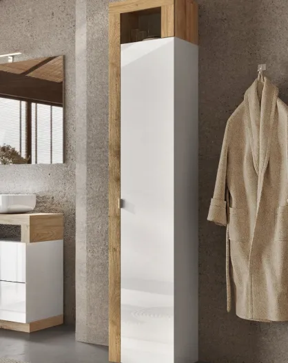 Ancona - Badkameropbergkolom 1 deur + 5 planken kadiz eikenwit glanzend gelakt front - 35x188x35 cm