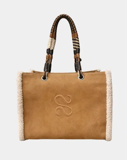 Giorgio Velvet Tabac tas van nubuck en schapenvacht - 30,5 x 40 cm