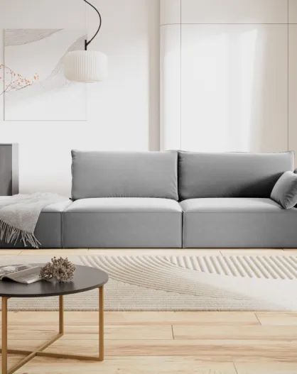 Vanda 4-zitsbank grijs fluwelen rechte bank - 264x110x85 cm