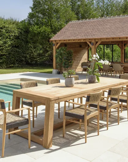 Tuinmeubelset 8/10 personen - 1 rechthoekige eettafel en 8 beige en zwarte tuinstoelen