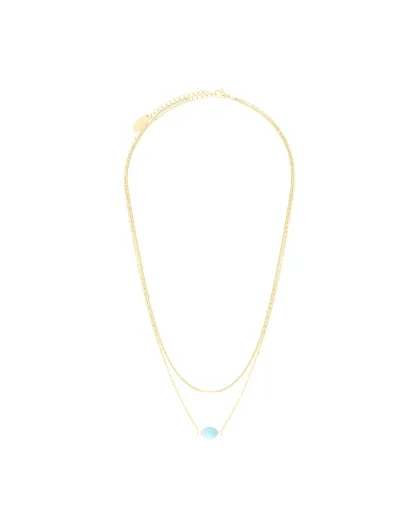 Halsketting in IP-goudstaal en blauwe halfedelsteen