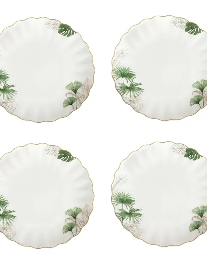 Set van 4 exotische wit/groene porseleinen dinerborden - D.26 cm