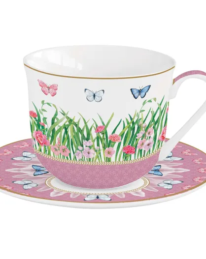 Veelkleurige SPRING PARADE porseleinen mok met schotel - 370 ml