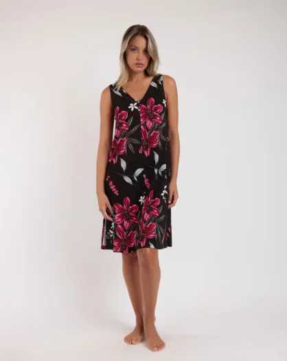 Mouwloze jurk in B-stijl met zwarte achtergrondprint