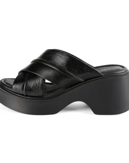 Room For Two zwarte leren muiltjes